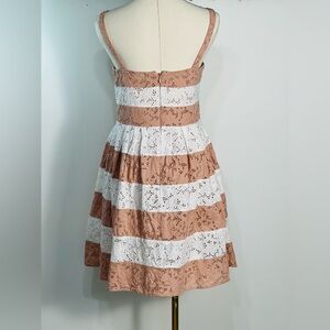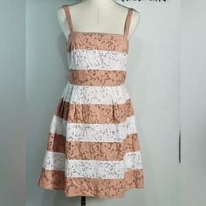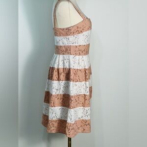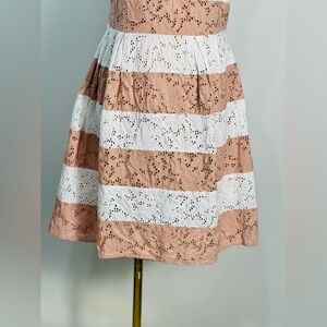 LOFT Striped Eyelet Fit & Flare Pink & White Cotton Dress Size 4