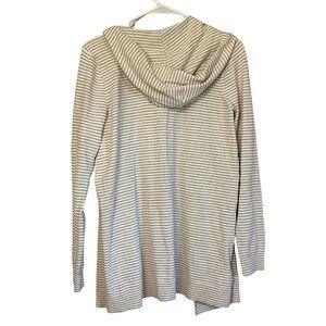 LOFT Striped Hooded Open Front Cardigan Sweater XS Beige White