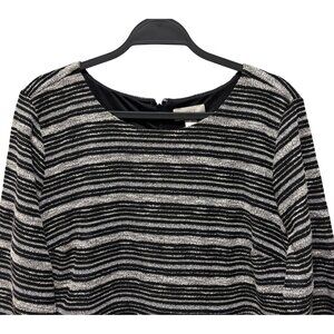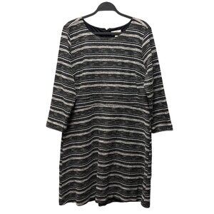 LOFT Striped Knit Dress Size 16 3/4 Sleeve Black Gray