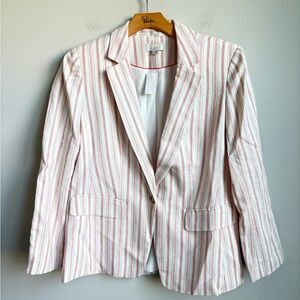 LOFT Striped Linen Blend Modern Blazer Jacket Size 14 NWT