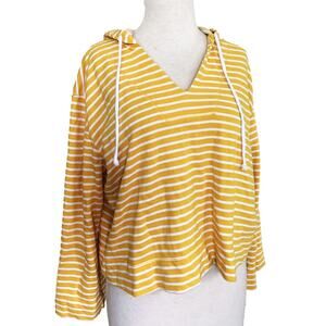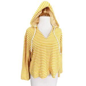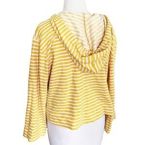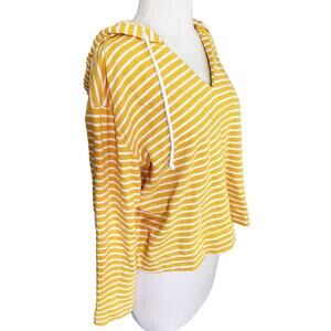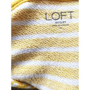 LOFT Striped Pullover Hoodie Sweater Yellow Cotton Blend V-Neck Long Sleeve Sz M