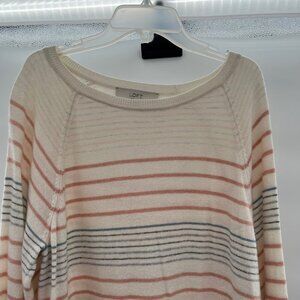 LOFT Striped Pullover Sweater Long Sleeve Ruffle Cuff Size Medium