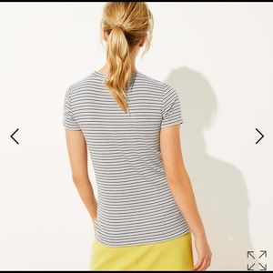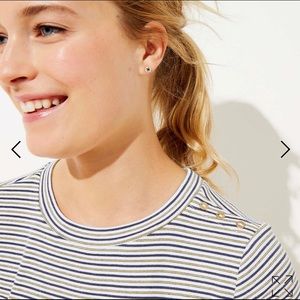 LOFT Striped Ribbed Shoulder Button Tee