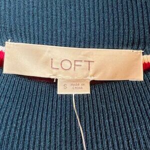 LOFT Striped Sweater Dress Small Navy Red White Bell Sleeve Knit Shift NWT