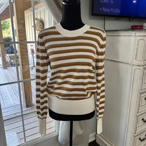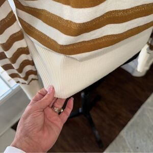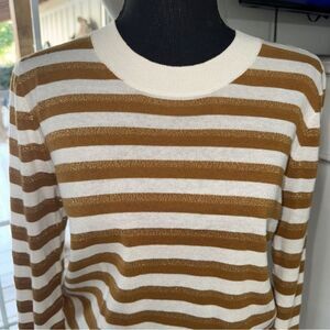 Stylish LOFT sweater featuring gold and white stripes. Perfect for any casual occasion.