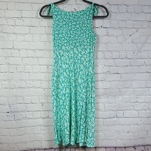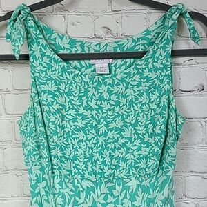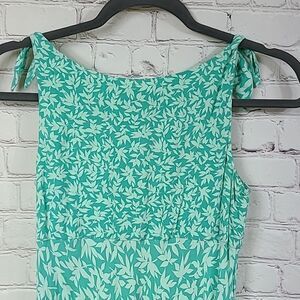 LOFT Sundress 2P Mint Green Shoulder Tie Leaf Print Sleeveless A-line F&F Dress