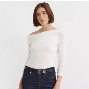 Ann Taylor loft off the shoulder sweater Long sleeve Color: whisper white Size large Sweater is new with tags and no defects B
