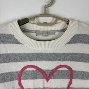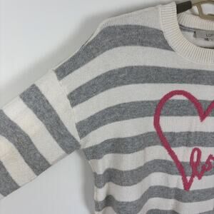 LOFT Sweater Crew neck striped drop sleeve Heart Love Graphic Medium Preppy