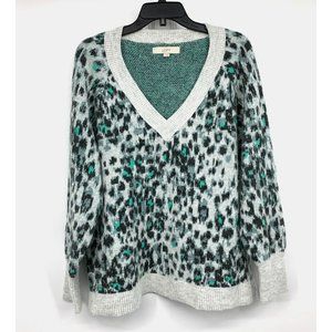 LOFT Sweater Womens Size Large Leopard Print Relaxed V Neck Gray Black Pullover. Great pre-owned condition. Chest: 24"
