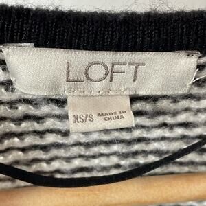 LOFT Sweater Poncho Shawl XS/S Black Ivory Check Cardigan Wrap Shawl
