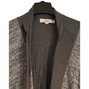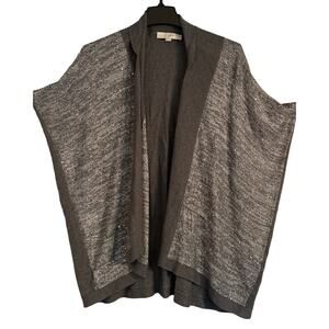 LOFT Sweater Shawl Womens Size M Grey Wool Sleeveless Open Front Cardigan Wrap