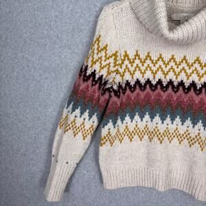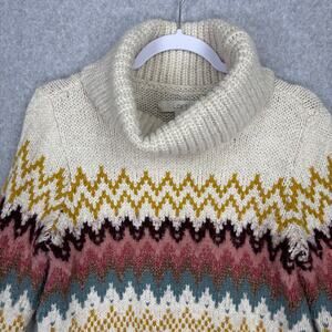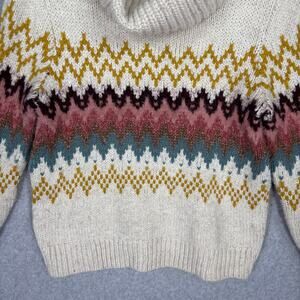 LOFT Sweater Small Cream Fair Isle Oatmeal Nordic Zig Zag Cowl Neck Winter $90