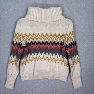 LOFT Sweater Small Cream Fair Isle Oatmeal Nordic Zig Zag Cowl Neck Winter Fisherman Turtleneck Beige Outdoor Preppy Tan Holiday Christmas