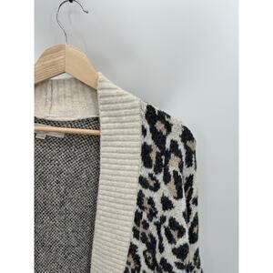 Cream, black leopard print open front knit wool blend cardigan sweater. Long sleeves. $89.50 retail.