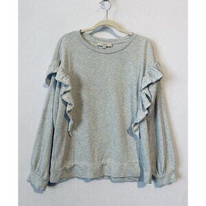 LOFT Sweater Womens Large Embroidered Ruffle Sleeve Sweatshirt Gray Cotton Boho