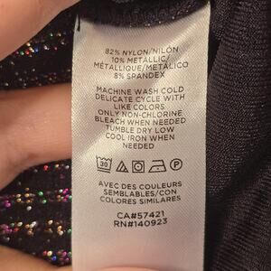 LOFT Sweater Womens Medium Black Rainbow Metallic Long Sleeve Square Neck Top