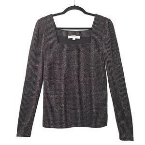 LOFT Sweater Womens Medium Black Multicolor Metallic Long Sleeve Square Neck Top