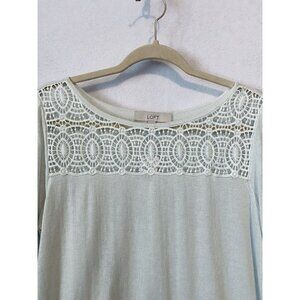 LOFT Sweater Womens Medium Crochet Trim Lightweight Hi Low Hem Green Cottagecore