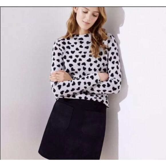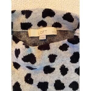 LOFT Sweater Women’s Medium Petite Heart Print Mock Neck Wool Blend Sweater EUC