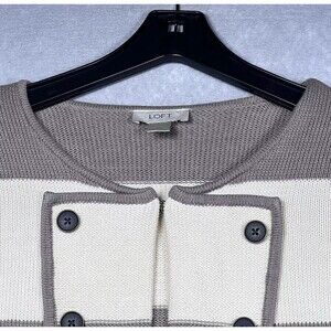 LOFT Sweater Womens Size Medium Off White Tan Stripe Knit Long Sleeve Buttons