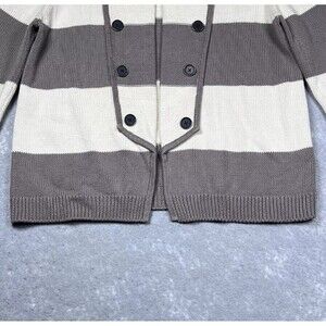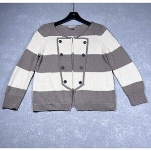 Up for sale: LOFT Sweater Womens Size Medium Off White Tan Stripe Knit Long Sleeve Buttons