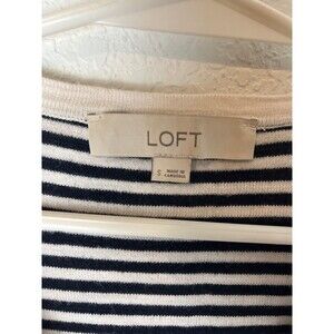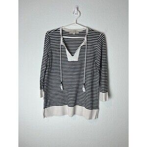 LOFT Sweater Womens Small Navy White Stripe Pullover Drawstring Tunic Top Cotton