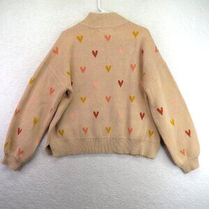 LOFT Sweater Womens XL Beige Half Zip Mock Neck Hearts Pullover Knit Cozy Ribbed
