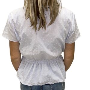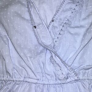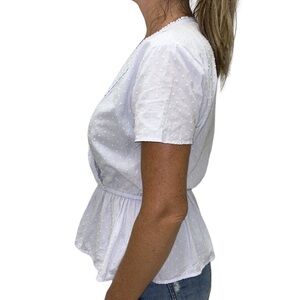 LOFT | Swiss Dot Blouse Embroidered Crochet Peplum Faux Wrap Light Blue XS