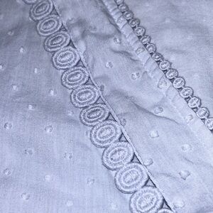 LOFT | Swiss Dot Blouse Embroidered Crochet Peplum Faux Wrap Light Blue …