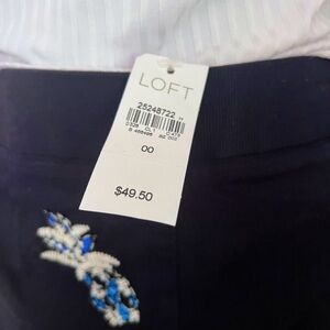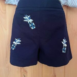 LOFT Sz 00 Navy Bermuda Shorts with Pineapple Embroidery