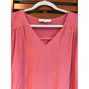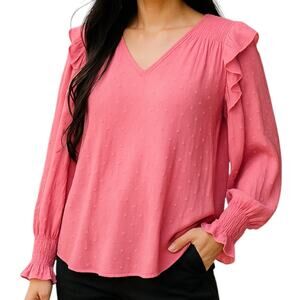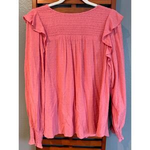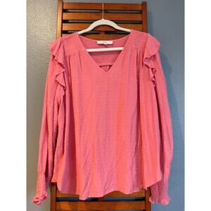 LOFT Sz L Chalk Rose Long Sleeve Ruffled Shoulders & Sleeve Hem | GUC