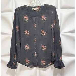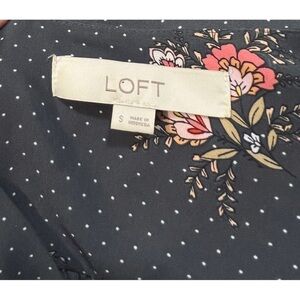 LOFT Sz S Gray Pink Floral Print Polka Dot Peasant Blouse Top Womens