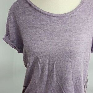 LOFT T Shirt Purple Cuffed Sleeve Relaxed Constrast Fabric Lounge Womens Size XS