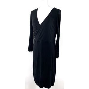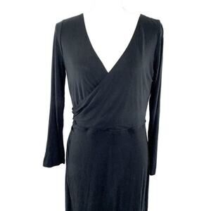 LOFT Tall Surplice Jersey 3/4 Dress Size MT Black Knee Length
