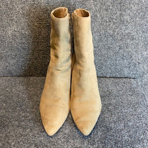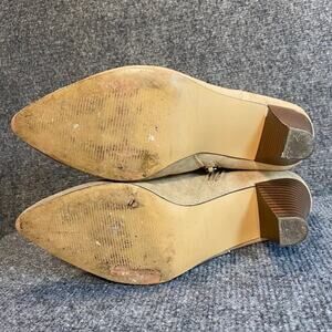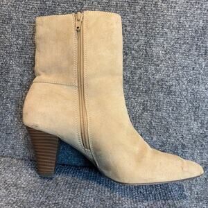 LOFT Tan Ankle Booties Womens 7 Stacked 2.75 inch Heel Side Zipper Shoes