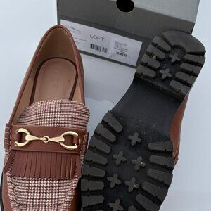 LOFT Tan and Brown Loafers with Gold Detail worn once