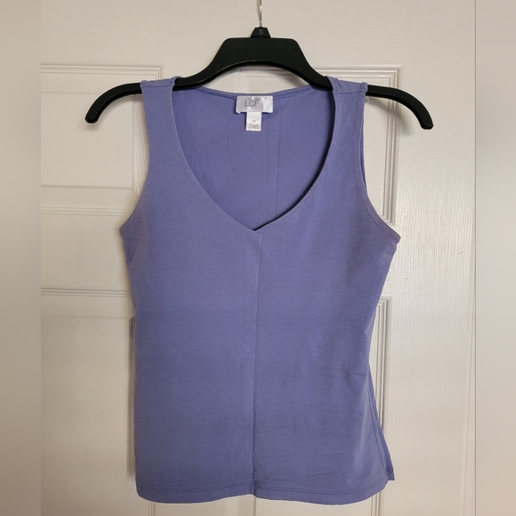 Buttery-soft LOFT tank in a gorgeous periwinkle color! V-neck, slightly fitted body and stylish straps add something extra special. I love this top, just no longer my size. Great used condition! Size XS.