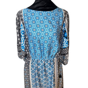 LOFT Tassel Boho Dress Size L Blue Geometric mosaic Tie
