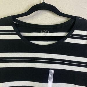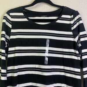 LOFT Tee T-Shirt Medium Scoop Neck L/S Striped Soft Cotton Basic Staple NWT