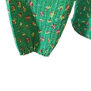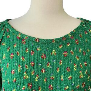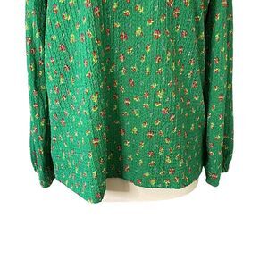 LOFT Textured Knit Top Womens Large Draped Long Sleeve Floral Green Multicolor