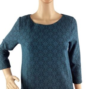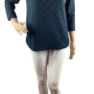 Design features: Textured print, 3/4 sleeves, pullover, casual, heavier weight fabric
