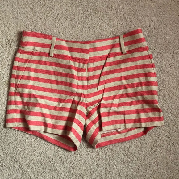 Rayon, linen, polyester mix. Great casual/dressy summer short. Closes like slacks with button and two hooks. Slit pockets on back give a nice silhouette. New condition