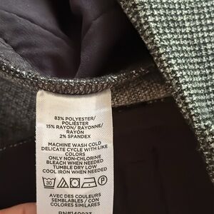 Details: Front zip with hook and bar closure. Belt loops. Slash pockets. Back welt pockets.