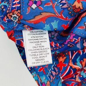 Stylish women's top featuring a vibrant floral pattern. The blue and red colors create a striking look, perfect for any occasion.