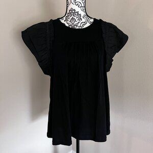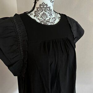 LOFT Tiered Ruffle Mixed Media Top - Black - Size XL