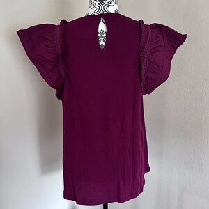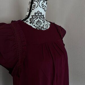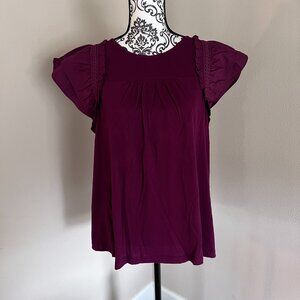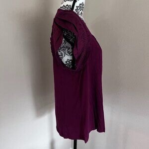 LOFT Tiered Ruffle Mixed Media Top - Magical Plum - Size XL