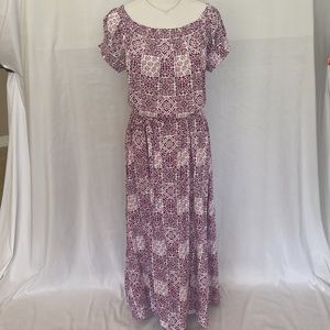 LOFT Tiled On & Off The Shoulder Maxi Dress, Magenta, Purple & White Size Medium