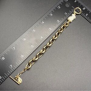LOFT Toggle Clasp Bracelet Gold Tone Chunky Chain . Measures 8" and has LOFT hang tag. Lovely chain bracelet with white shell beads. Very good condition, shiny and nice and looks like new may have only been gently worn if at all. #42-B