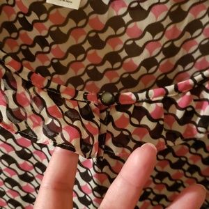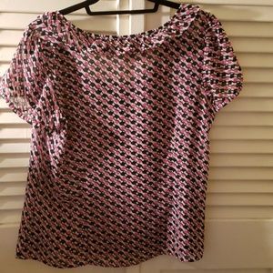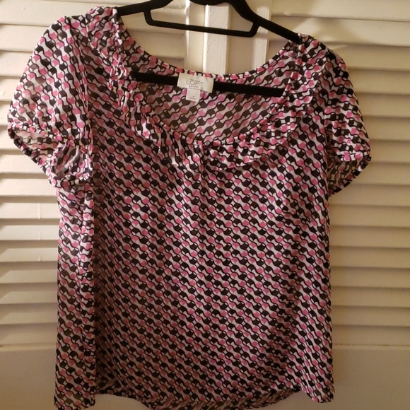 EUC Short Sleeve Top Size Petite Large Semi Sheer w/ ruffle collar *** Smoke Free Home ***