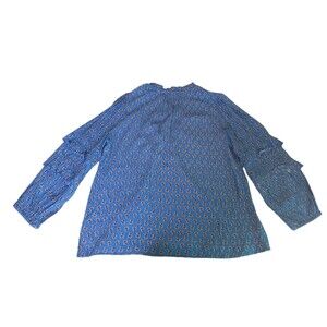 Preowned Loft top women's size small. Blue. Paisley print. Puff sleeve. Ruffle Sleeve. Long sleeve. Rayon. Button Up. Boho bohemian. Made in 2023.